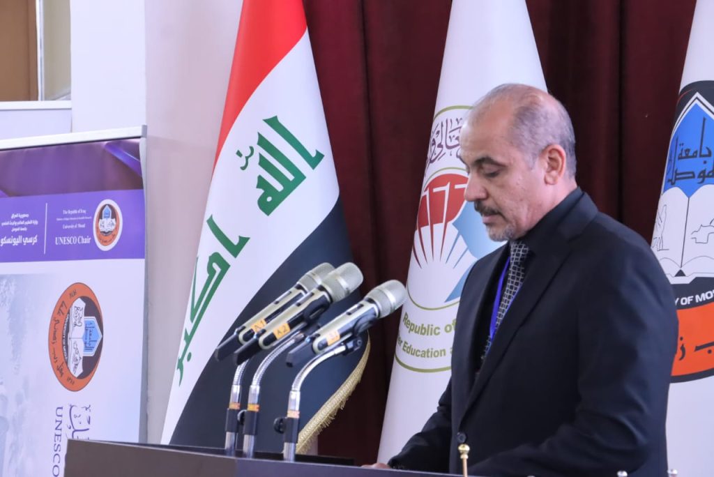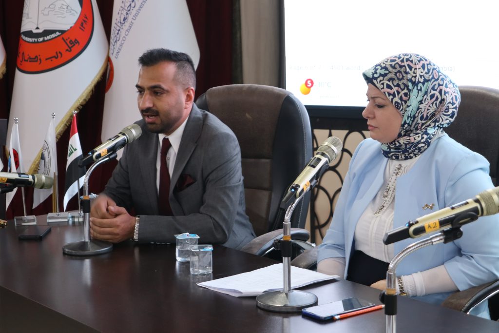During the proceedings, the session titled “Living Together in Nineveh: Reality and Challenges” brought together Dr. Mahmoud Azzo, Assistant Professor of Political Science, University of Mosul; Prof. Dr. Khalid Mahmoud Hamy, Professor of Sociology, University of Mosul; Mr. Yohanna Youssef Towaya, Director of the Humanitarian Nineveh Relief Organization; Mr. Khidher Domle, Coordinator and Trainer at the Center for Peace and Conflict Resolution Studies, University of Duhok. The session was coordinated by Dr. Raqeeb Muhammad Jassim Al-Hamawi, Professor of Human Rights Law and Director of the UNESCO Chair on Countering Violent Extremism and Promoting a Culture of Peace, University of Mosul.